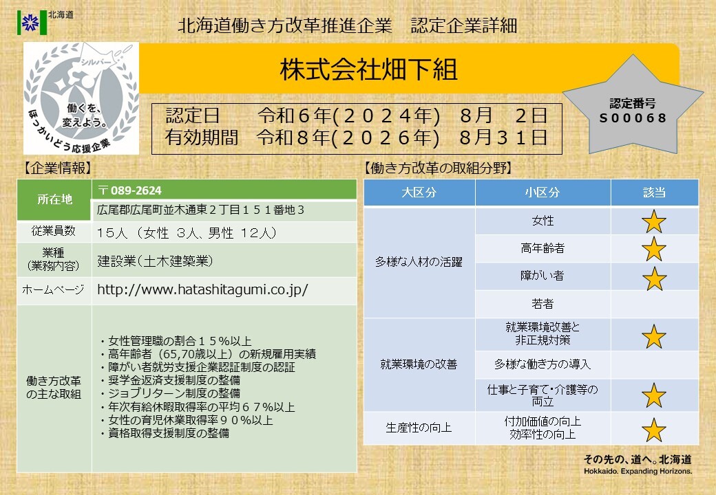 S00068 | 株式会社畑下組 | 広尾郡広尾町 | 詳細 |