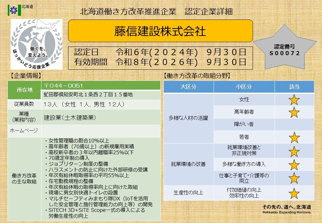S00072 | 藤信建設株式会社 | 虻田郡倶知安町 | 詳細 |
